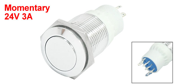 16mm Thread Panel Mounting SPDT Momentary Push Button Switch 24V 3A