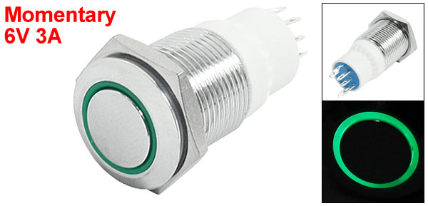 Product Name Push Button Switch Model LA16 Contact Type SPDT Rating Voltage 6V 3A Actuator Type Momentary Position 2(1NO 1NC) Pin Number 5 Thread Dia 16mm / 0.75"(3/4") Button Dia 11mm / 0.43" Overall Size(Not Included Pin ) 32 x 19mm / 1.2" x 0.75" (L*Max.D) Material Metal Light Color Green Color Silver Tone Weight 17g Package Content 1 x Push Button Switch - Reviews