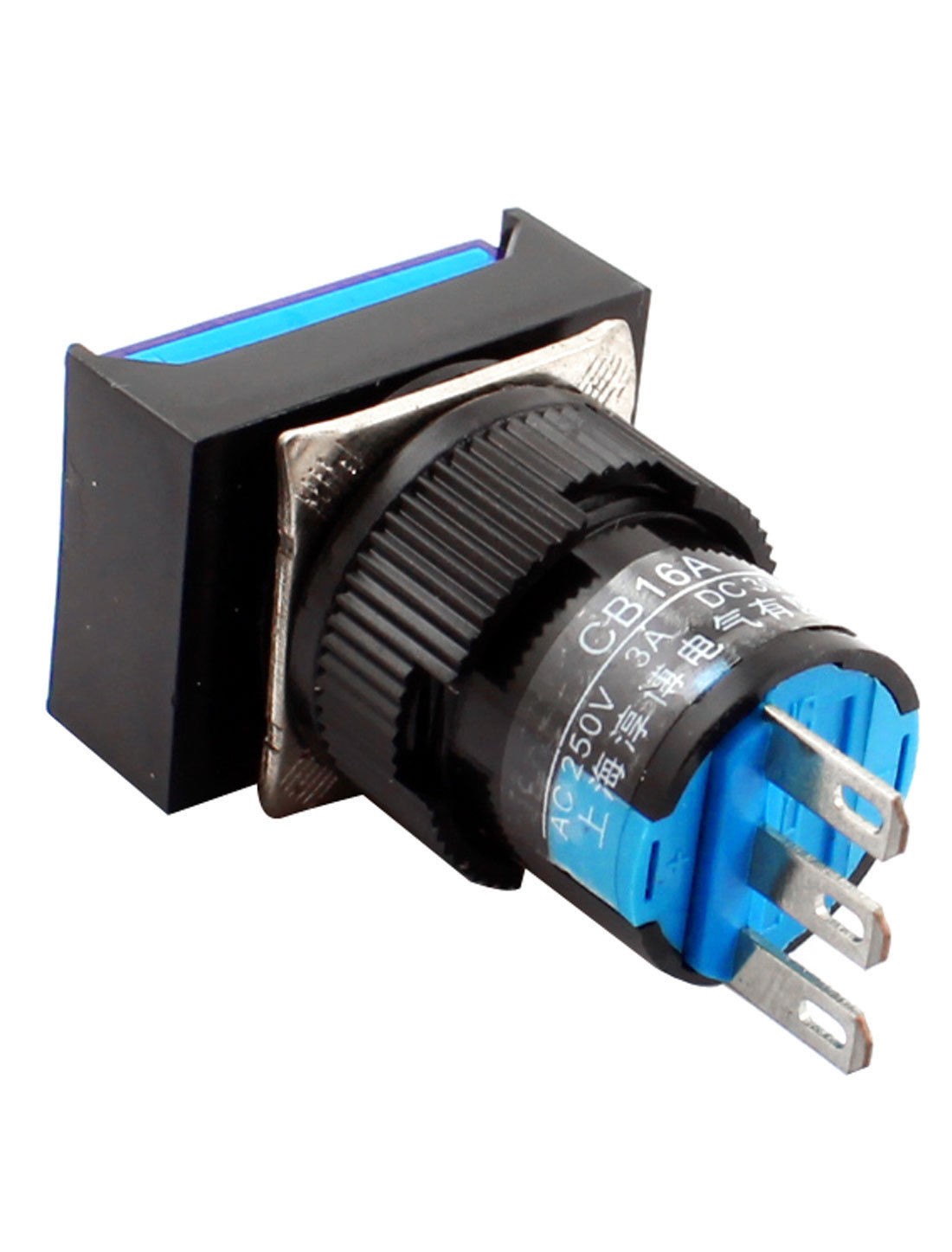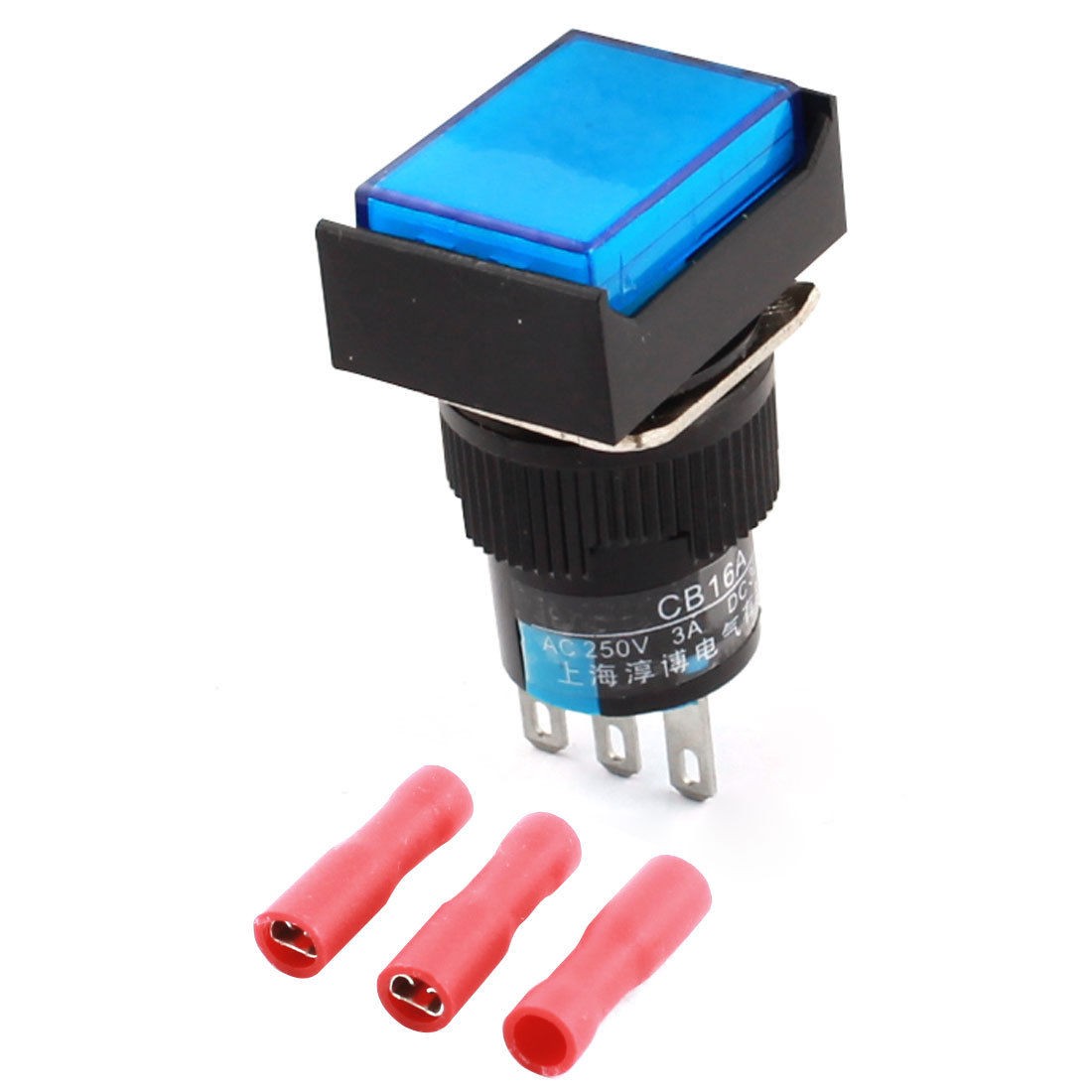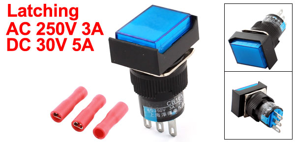 Item Name Rectangle Head Push Button Switch w Crimp Connector Model CB16A Contact Type SPDT(1NO 1NC) Action Type Latching Pin Number 3 Voltage, Current AC 250V 3A