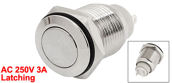 16mm Threaded SPST Latching Silver Tone Pushbutton Switch AC 250V 3A