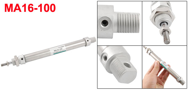 Product Name Air Cylinder Model MA16-100 Action Type Double Acting Working Fluid Air Bore 16mm/0.63'' Stroke 100mm/3.9'' Max.Press 1.0 Mpa Rod Thread Diameter 5.7mm/0.22'' Piston Rod Diameter 6mm/0.24'' Screw Hole Diameter 4.2mm/0.17'' Threaded End Diameter 15.9mm/0.63'' Overall Size 217 x 20.5mm/8.5'' x 0.8'' (L*Max. D) Material Stainless Steel Color Silver Tone Weight 120g Package Content 1 x Air Cylinder - Reviews