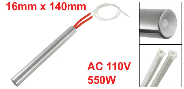 Product Name Cartridge Heater Material Stainless Steel, PVC, Nylon Rated Voltage AC 110V Power 550W Heater Size (Approx.) 16 x 140mm/0.6'' x 5.5'' (D * L)