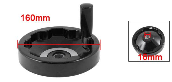 16mm x 160mm Speed Change Plastic Hand Wheel Black for Lathe Milling Machine