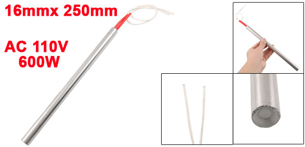 Product Name Cartridge Heater Material Stainless Steel, PVC, Nylon Rated Voltage AC 110V Power 600W Heater Size (Approx.) 16 x 250mm/ 0.63" x 9.8" (D * L)