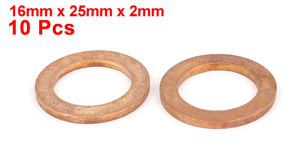16mm x 25mm x 2mm Metric Ring Shape Copper Flat Washer 10 Pcs
