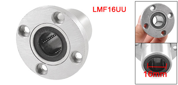Product Name Linear Bearing Model LMF16UU Material Metal, Rubber Inner Diameter 16mm/ 0.63" Outer Diameter 28mm/ 1.1" Total Length 37mm/ 1.46" Bottom Size 48 x 6mm/ 1.9" x 0.24" (D*T) Mount Hole Dia. 4mm/ 0.16" Hole Pitch 27mm/ 1.06"(Center to Center) Main Color Silver Tone Net Weight 124g Package Content 1 x Linear Bearing  - Reviews
