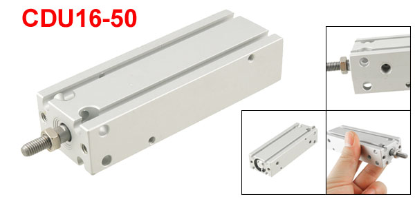 Product Name Air Cylinder Model CDU16-50 Action Double Action Rod Type Single Rod Bore 16mm Stroke 50mm Rod Diameter 6mm Thread Hole Diameter 4mm Rod Thread Diameter 5mm Mount Hole Dia. 4.5mm Max Press 1.0Mpa Overall Size(Approx) 110 x 32 x 22mm/ 4.3" x 1.3" x 0.87" (L*W*T) Material Aluminum Alloy Weight 111g Package Content 1 x Air Cylinder - Reviews