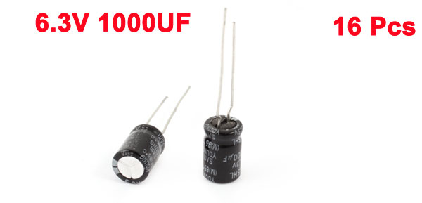 16pcs 6.3V 1000UF Radial Cylindrical Aluminum Electrolytic Capacitor