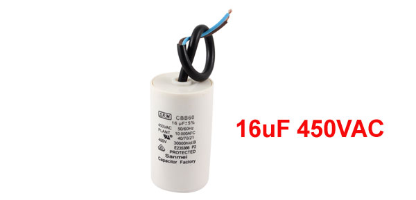 Product Name Motor Capacitor Housing Material Plastic Dielectric Material Polypropylene Model CBB60 Capacitance 16uF Tolerance ±5% Rated Voltage 450VAC Frequency 50/60Hz Body Size 3.9 x 6.9cm / 1.5" x 2.75" (D * H) Wire Size(Approx.) 15 x 0.6cm / 5.9" x 0.24" (L * Max.D) Color White,Black,Blue,Brown Weight 84g Package Content 1 x Motor Capacitor - Reviews