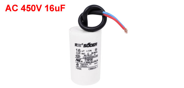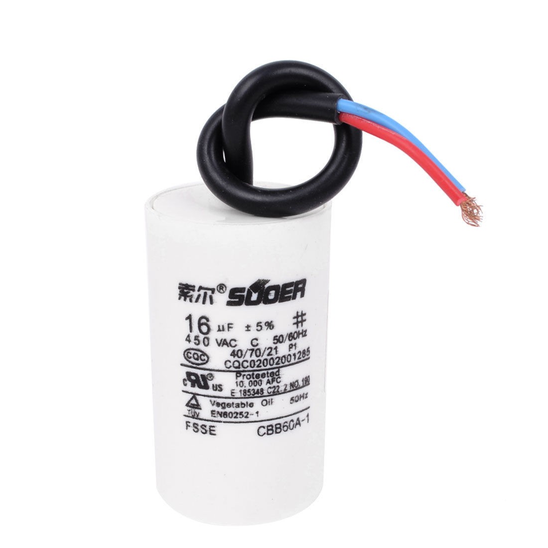 Product Name Motor Run Capacitor Model CBB60 Rated Capacitance 16uF Tolerance ±5% Rated Voltage AC 450V Frequency 50/60Hz Body Size 7 x 4cm / 2.8" x 1.6"(H*D) Wire Length 16cm / 6.3" Main Material Polypropylene Film, Plastic Main Color White Weight 77g Package Content 1 x Motor Run Capacitor - Reviews