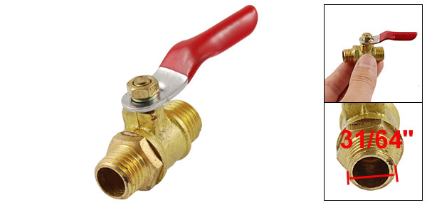 Product Name Ball Valve Material Plastic, Metal Color Gold Tone, Red Inner Valve Hole Dia 6mm/15/64'' Male Thread Dia. 13.5mm/17/32''