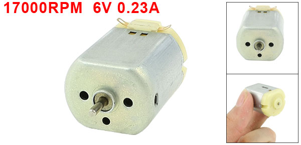 Product Name DC Motor Rated Voltage DC 6V Speed 17000RPM Current 0.23A Hole Diameter 2mm/0.08" Hole Center Distance 12mm/0.5" Shaft Size 2 x 6mm/ 0.08" x 0.24"(D*L) Body Size 24 x 18 x 31mm/ 0.9" x 0.7" x 1.2"(L*W*H) Main Color Silver Tone Material Metal Net Weight 36g Package 1 x DC Motor - Reviews