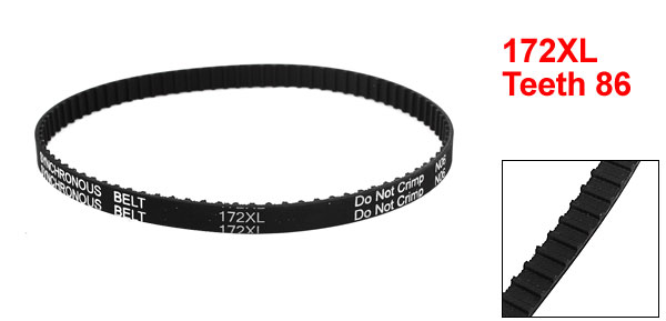 Product Name Timing Belt Model 172XL Code Number 037 Number of Teeth 86 Teeth Pitch 5.08mm / 0.2" Belt Width 9.5mm / 0.37" Pitch Length 436.88mm/ 17.2" Material Rubber Color Black Weight 9g Package Content 1 x Timing Belt - Reviews