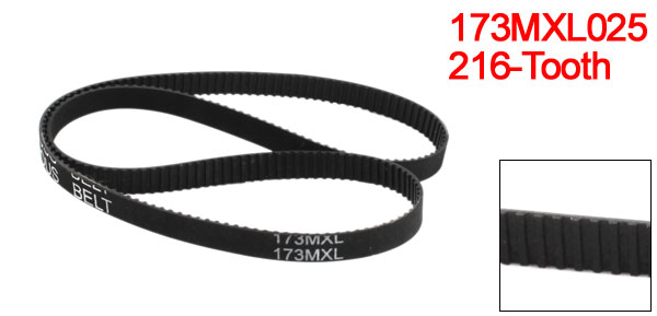 Product Name Timing Belt Model 173MXL025 Number of Teeth 216 Pitch 2.032mm / 0.08" Belt Width 6.4mm / 0.25"(1/4") Pitch Line Length 439.42mm/17.3" Material Rubber Color Black Weight 6g Package Content 1 x Timing Belt - Reviews
