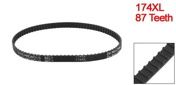 Product Name Timing Belt Model 174XL Number of Teeth 87 Code Number 037 Teeth Pitch 5.08mm / 0.2" Belt Width 9.5mm / 0.37" Pitch Length 441.96mm/ 17.4" Material Rubber Color Black Weight 14g Package Content 1 x Timing Belt - Reviews