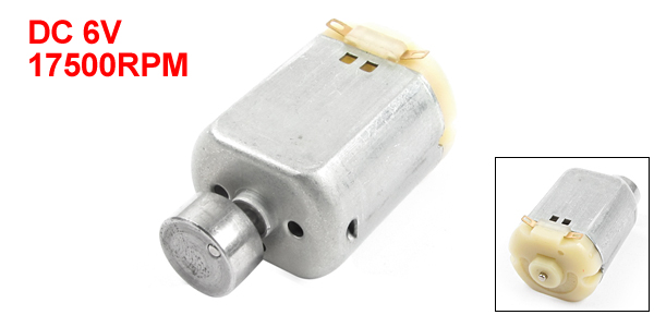 Details17500RPM 6V 2-Pin Terminals Magnet Vibration DC Motor  Product Name DC Vibration Motor Rated Voltage DC 6V Speed 17500RPM Body Size 24 x 20 x 32mm / 0.9" x 0.8" x 1.3"(L*W*H) Vibration Size(Each) 12 x 6mm/ 0.47" x 0.24"(D*H) Total Length 43mm / 1.7" Main Color Silver Tone Material Metal Net Weight 42g Package 1 x DC Vibration Motor