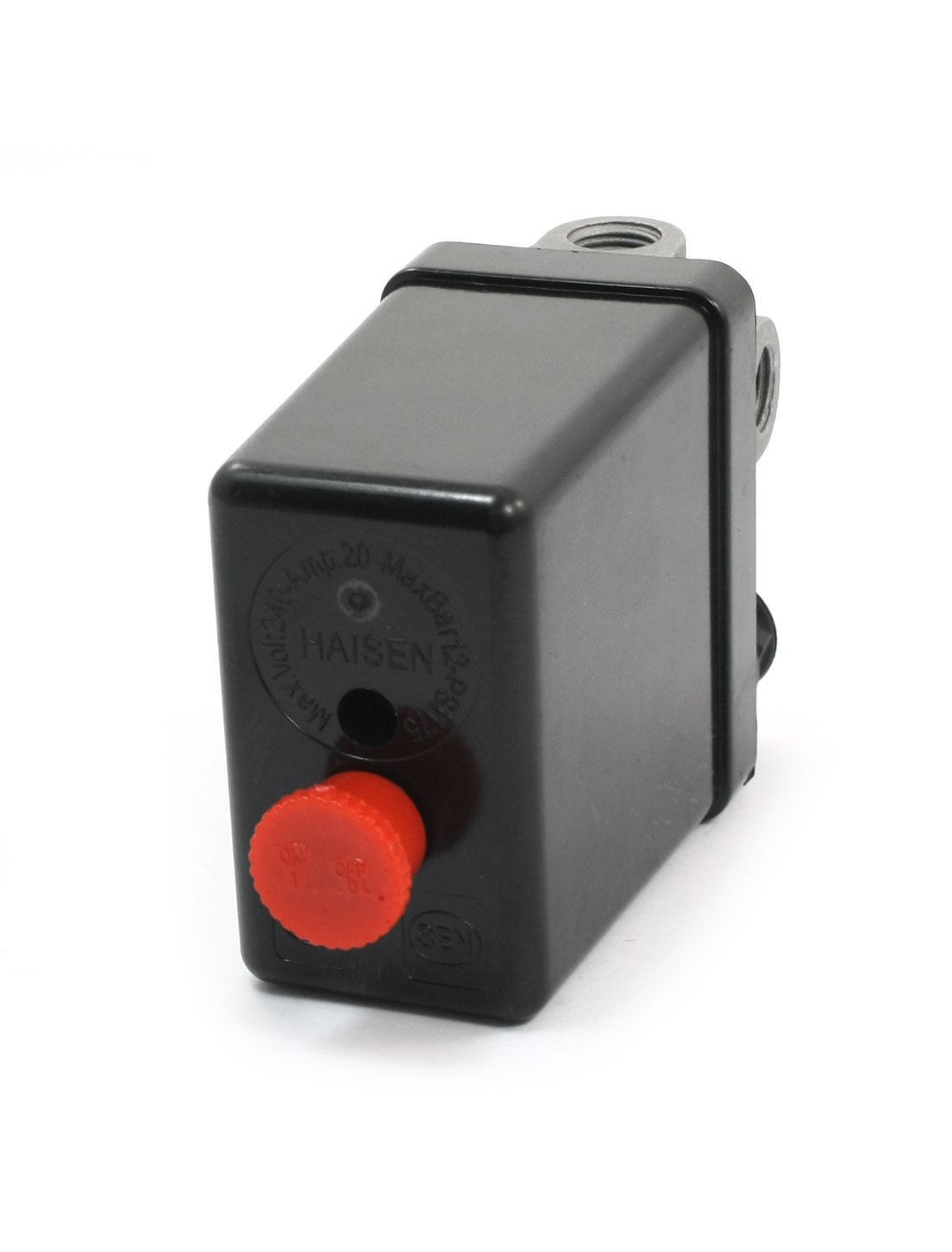 Product Name Air Compressor Pressure Switch Type 4 Ports Max. Voltage AC 240V Max. Current 20A Pressure 175PSI, 12 Bar Joint Thread Hole Dia.(Each) 12mm/1/4PT Total Size 12 x 7.8 x 5cm /4.7" x 3" x 2" (L*W*H) Button Diameter 2.1cm/ 0.8" Material Metal, Plastic Main Color Black, Red Weight 285g Package Content 1 x Air Compressor Pressure Switch - Reviews