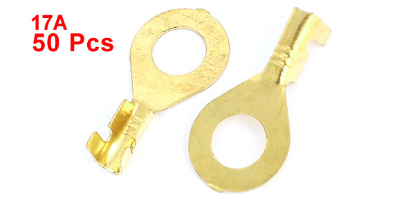 Product Name Non-Insulated Ring Terminal Fit Wire Range AWG9-3 Max. Current 17A Tongue Hole Diameter 6.5mm/0.26" Fit Stud Dia. M6 Vent Diameter 3mm/0.12" Total Size 23 x 12 x 5mm /0.9" x 0.47" x 0.2"(L*W*H) Material Copper Main Color Gold Tone Net Weight 27g Package Content 50 x Non-Insulated Ring Terminals - Reviews