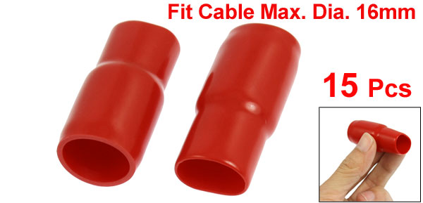 Product Name Battery Terminal Boot Type Straight Material PVC Fit Terminal Max. Dia. 17mm/ 0.67" Fit Cable Max. Dia. 16mm/ 0.63" Overall Size(Approx.) 49 x 22mm/ 1.9" x 0.87" (L*D) Color Red Weight 74g Package Content 15 x Battery Terminals Boot - Reviews