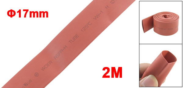 17mm Dia. Heat Shrinkable Tube Shrink Tubing 2M 6.6ft Red