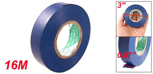 Product Name Insulation Tape Tape Width 17mm/0.67'' Tape Thickness 17mm/0.67'' Tape Length 16M / 52.4ft Overall Diameter 76mm/3'' Material PVC Color Royal Blue Weight 81g Package Content 1 x Adhesive Insulation Tape - Reviews