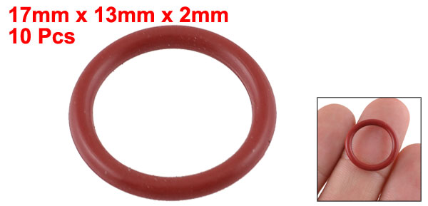 17mm x 13mm x 2mm Red Rubber O Shaped Rings Oil Seal Gasket Washer 10 Pcs