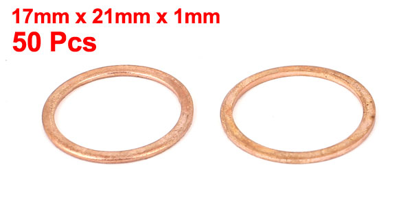 17mm x 21mm x 1mm Metric Ring Shape Copper Flat Washer 50 Pcs