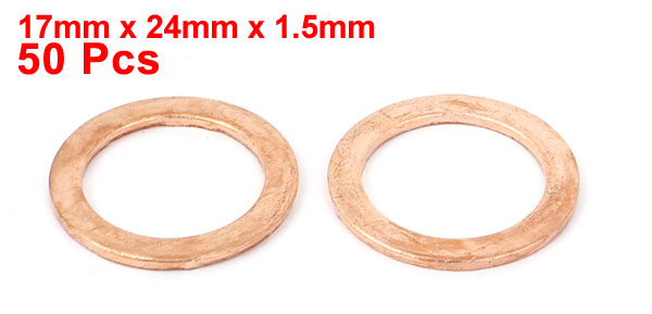 17mm x 24mm x 1.5mm Metric Ring Shape Copper Flat Washer 50 Pcs