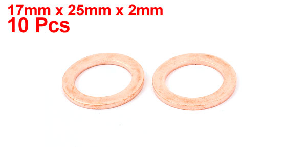 17mm x 25mm x 2mm Metric Ring Shape Copper Flat Washer 10 Pcs