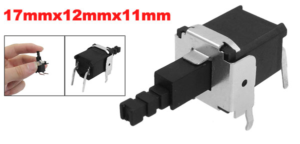 Product Name Tact Switch Contact Type Self-locking(SPST) Pin Number 2 Dimension 17 x 12 x 11mm / 0.67" x 0.47" x 0.43" (L*W*H) Button Size 15 x 6 x 4mm / 0.59" x 0.24" x 0.16"(L*W*H) Pin Pitch 8mm / 0.31" Pin Length 10mm / 0.39" Material Plastic, Metal, Electric Parts Color Black, Silver Tone Net Weight 5g Package Content 1 x Tact Switches - Reviews