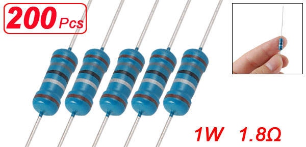 Product Name Metal Film Resistor Quantity 200±2% Pcs Rated Power 1W Tolerance ± 1% Resistance Value 1.8Ω T.C.R(Temperature Coefficient) ±50ppm/°C Body Size 4 x 11mm/ 0.16" x 0.43" (D*L) Leads Dia (Approx.) 0.5mm/ 0.02" Total Length (Approx.) 72mm/ 2.8" Color As Picture Shown Net Weight 119g Package Content 200 Pcs x Metal Film Resistors - Reviews