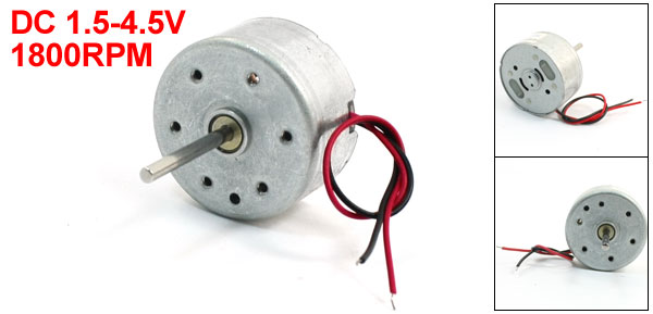 Product Name Micro Vibration Motor Model RF-300EA Rated Voltage DC 1.5-4.5V No-load Speed 1800RPM Shaft Dia 2mm/0.78" Body Size 12 x 24 mm / 0.47" x 0.95" (L*D) Total Length 31 mm / 1.2" Main Color Silver Tone Material Metal, Plastic Weight 23g Package 1 x Micro Vibration Motor - Reviews