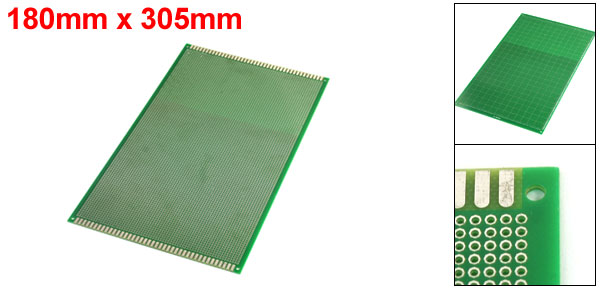 Product Name Universal PCB Board Hole Dia(Approx) 1mm / 0.039" Hole Pitch(Approx) 2.54cm / 0.1" Size(Approx) 180 x 305mm / 7.1" x 12"(W*L) Thickness(Approx) 1.5mm / 0.059" Material FR-4 Color Green Net Weight 135g Package Content 1 Pcs x Universal PCB Board - Reviews