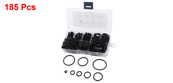 185 Pcs 2.4mm Thickness 8 Size Black Rubber Oil Seal O Ring Gasket Washer Set