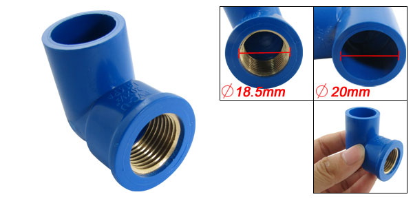 Product Name Pipe Adapter Type 90 Degree Elbow Type Hole Type Screw Female to Smooth Female Material PVC-U, Brass Color Blue Hole Dia (Approx.) Screw Female: 18.5mm / 0.728" Smooth Female: 20mm / 0.787" Overall Size (Approx.) 44 x 44 x 32mm/ 1.7" x 1.7" x 1.2" (L*W*T) Weight 35g Package Content 1 x Pipe Adapter - Reviews