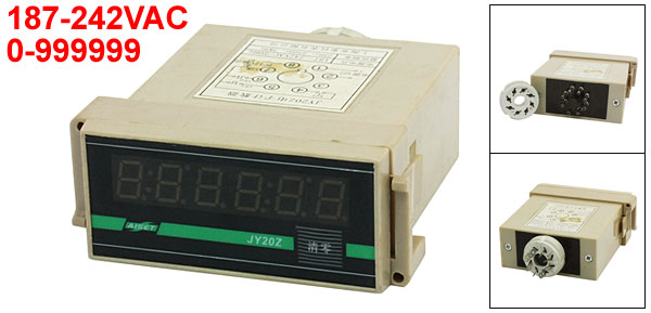 Product Name Digital Counter Model JY20Z(N)-B Digit Display 6 Power 187-242VAC 50Hz Range 0-999999 Working Temperature 0-50C Pin Numbers 8Pins External Material Plastic Color Gray Total Size 105 x 86 x 36mm/4.1" x 3.4" x 1.4" (L*W*T) Weight 222g Package Content 1 x Digital Counter - Reviews