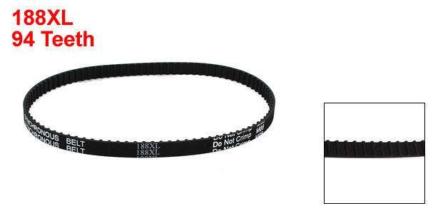 Product Name Timing Belt Model 188XL Number of Teeth 94 Code Number 037 Teeth Pitch 5.08mm / 0.2" Belt Width 9.5mm / 0.37" Pitch Length 477.52mm/ 18.8" Material Rubber Color Black Weight 14g Package Content 1 x Timing Belt - Reviews