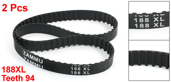 188XL 94 Teeth 10mm Width Rubber Industrial Synchronous Timing Belt Black 2Pcs