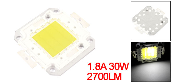 Product Name 30W LED Emitter DC Forward Voltage 16~18V DC Forward Current 1.8A Intensity Luminous 2700LM Color Tenpetature 6000-6500K Viewing Angle 60° power consumption 30W Total Size 5.2 x 4.6 x 0.43cm/ 2.1" x 1.8" x 0.17"(L*W*T) Emitter Size 2.2 x 2.2cm / 0.87" x 0.87"(L*W) Emitter Color Yellow Light Color White Material Electronic Parts Net Weight 11g Package Content 1 x 30W LED Emitter - Reviews