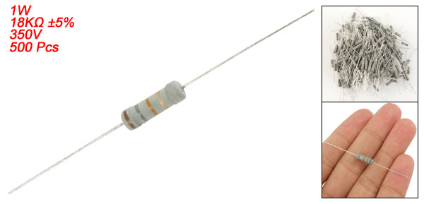 Product Name Carbon Film Resistor Material Type Carbon Film Rated Power 1W Resistance Value 18K ohm Tolerance ±5% Withstand Voltage 350V Body Size (Approx.) 10.7 x 3.5mm /0.42" x 0.14" (L*Dia.) Lead Size (Each End) 23 x 0.4mm/0.9" x 0.016" (L*Dia.) Color As Picture Shown Weight 155g Package Content 500 Pcs(±2%) x Carbon Film Resistors - Reviews