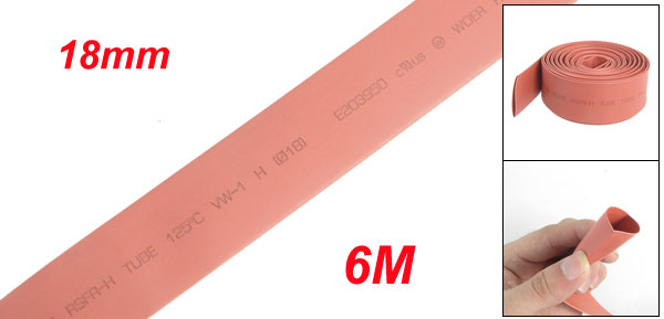 18mm Dia. Heat Shrinkable Tube Shrink Tubing 6M 19.7ft Red