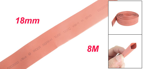 18mm Dia. Heat Shrinkable Tube Shrink Tubing 8M 26.2FT Red