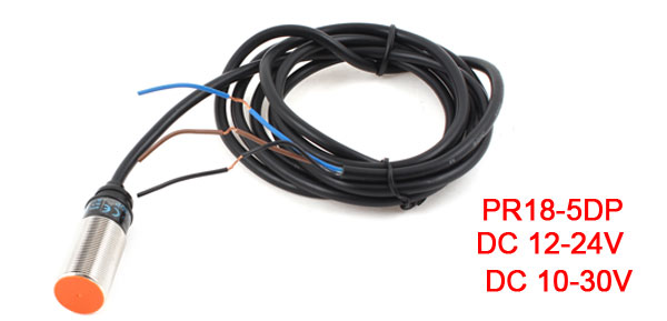 Product Name Proximity Switch Model PR18-5DP Wire Type 3 Wire Theory Inductive Sensor Output Type PNP, NO(Normal Open) Diameter of Head 18mm Detecting Distance 5mm±10% Hysteresis Max. 10% of Detecting Distance tandard Detecting Target Size:18 x 18 x 1mm