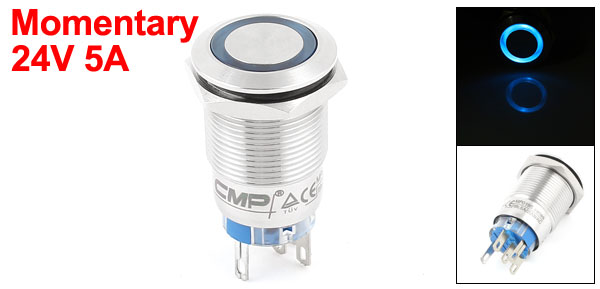 Product Name Push Button Switch Contact Type SPDT Rating Voltage 24V 5A Actuator Type Momentary Position 2(1NO 1NC) Light Color Blue Pin Number 5 Thread Dia 18mm / 0.7" Button Dia 20mm / 0.8" Overall Size(Not Included Pin ) 33 x 25mm / 1.3" x 1"(L*H) Material Metal Color Silver Tone Weight 20g Package Content 1 x Push Button Switch - Reviews