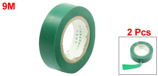 18mm Wide 9M Long Self Adhesive Green PVC Insulation Tape Roll 2PCS