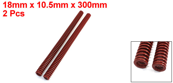 Product Name Compression Spring Type US Standard Size 18 x 10.5 x 300mm/0.7" x 0.41" x 11.8"(OD* Inner Dia * L) Materials Chromium Alloy Color Red Net Weight 307g Package Content 2 x Compression Spring - Reviews