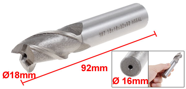 Product Name End Mill Cutter Material HSS Cutting Diameter 18mm / 0.71" Cutting Depth 32mm / 1.3" Shank Diameter 16mm / 0.63" Total Length 92mm / 3.6" Mill Cutter Color Gray Weight 140g Package Content 1 x Straight Shank End Mill Cutter