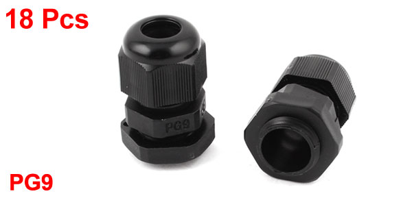 18pcs Black Plastic PG9 3/8NPT Thread 4-8mm Wire Waterproof Fastener Cable Gland