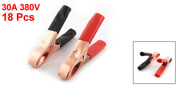 18PCS Copper Plated Car Battery Test Alligator Clip Red Black 30A 380V