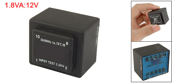 Product Name Encapsulated Transformer Model PE3015-M Power 1.8VA Primary 1-5 220V Secondary 7-9 12V/150mA Pin Number 4 Lead Pin Pitch 5mm/0.2" Pin Size 0.8 x 5mm/0.03" x 0.19"D*H) Total Size(Approx.) 3.2 x 1.7 x 3.1cm/ 1.26" x 0.67" x 1.2"(L*W*H) Color Black Weight 91g Package Content 1 x Encapsulated Transformer - Reviews
